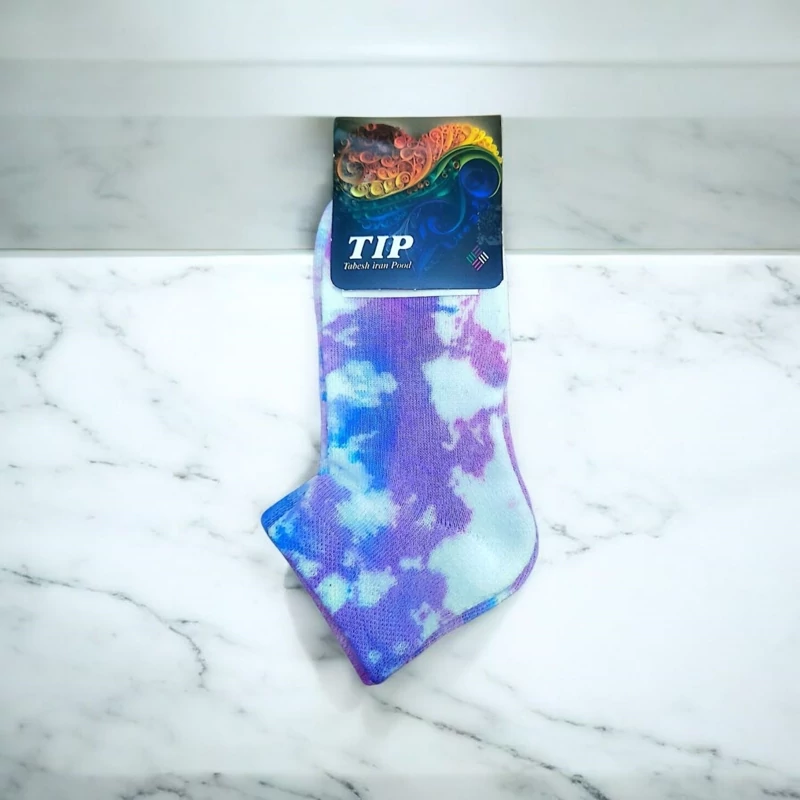 جوراب مچی زنانه مدل حوله ای آبرنگی بسته 6 عددی