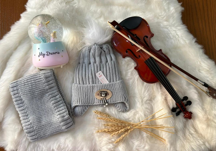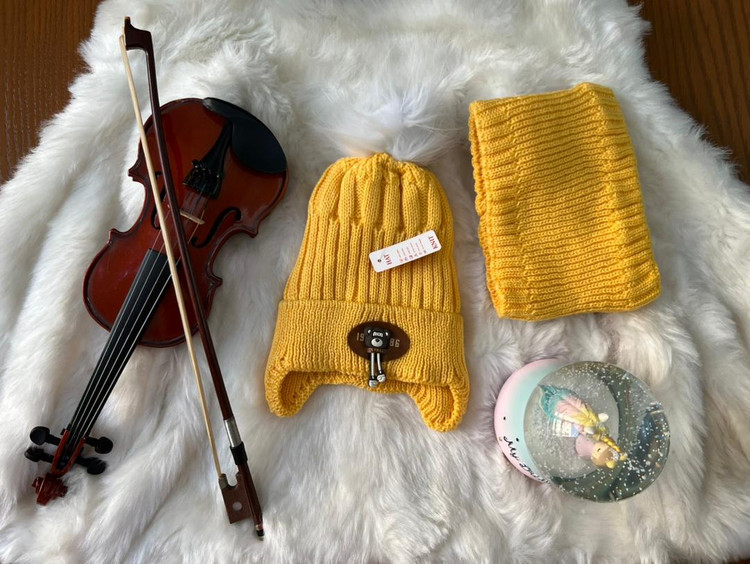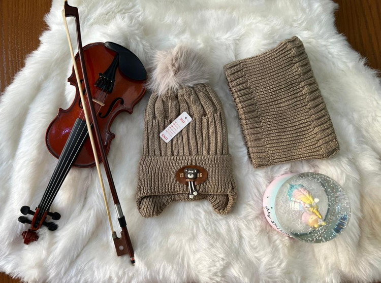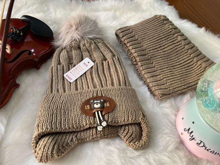 ست کلاه و شال گردن بافتنی بچگانه مدل رو گوشی