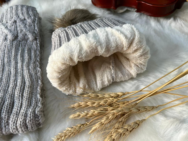 ست کلاه و شال گردن بافتنی پسرانه مدل لب برگردان