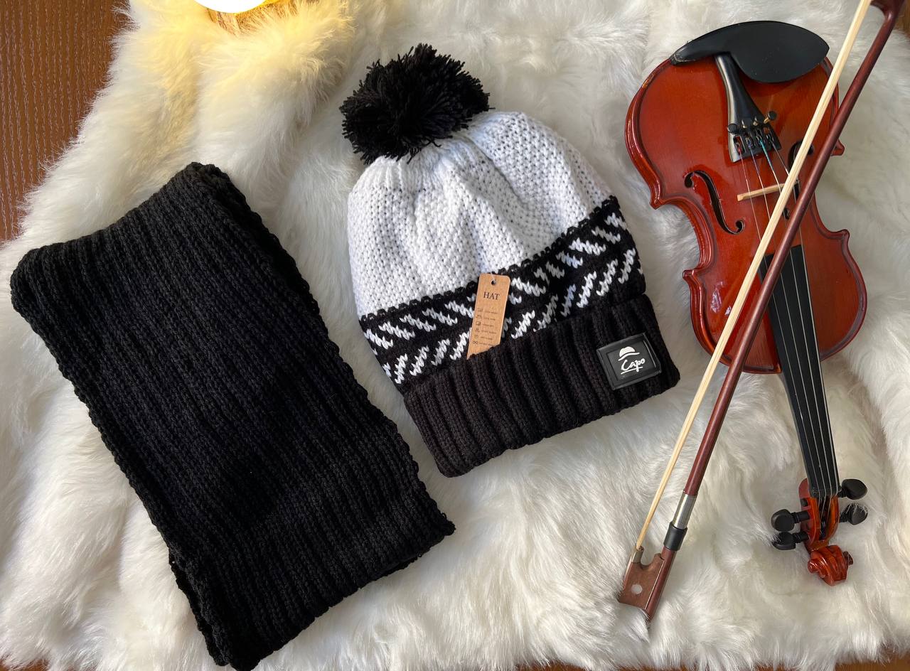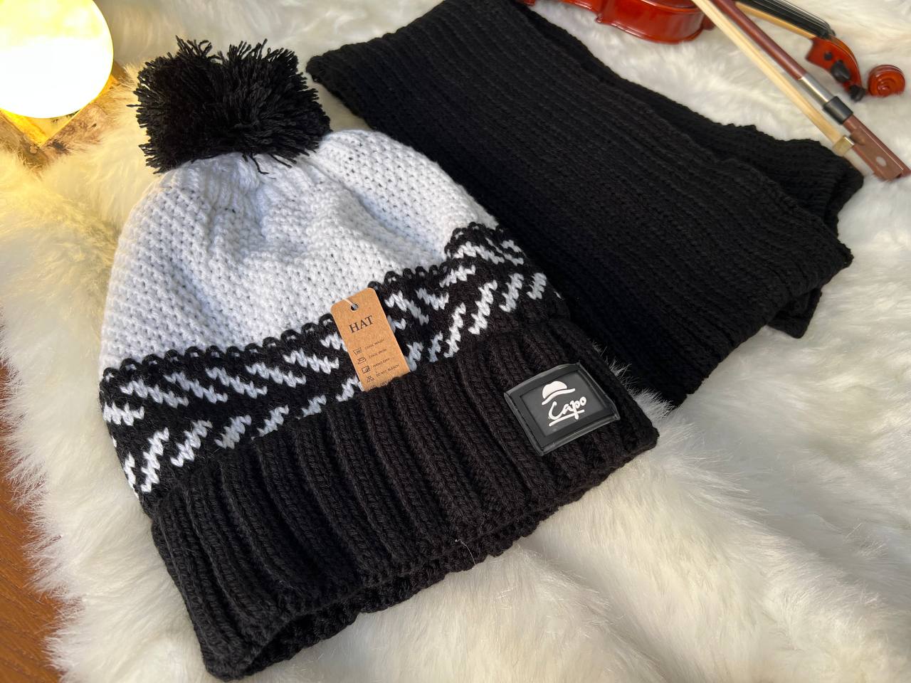 ست کلاه و شال گردن بافتنی پسرانه مدل زیگزاگ